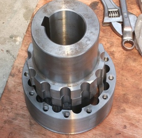 5:ZLZ型接中間軸彈性柱銷齒式聯(lián)軸器主要特點:(1)傳遞轉(zhuǎn)矩大,在相同轉(zhuǎn)矩時回轉(zhuǎn)直徑大多數(shù)比齒式聯(lián)軸器小,體積小,質(zhì)量輕,可部分代替齒式聯(lián)軸器。(2)與齒式聯(lián)軸器相比,彈性柱銷齒式聯(lián)軸器結(jié)構(gòu)簡單,組成零件較少,制造較方便,不用齒輪加工機床。(3)維修方便,壽命較長,拆下檔板即可 換尼龍柱銷。(4)彈性柱銷齒式連軸器的尼龍柱銷為自潤材料,不需潤滑,不僅節(jié)省潤滑油,而且凈化工作環(huán)境。(5)彈性柱銷齒式連軸器的減振動能差,噪聲較大。
